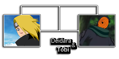 Deidara & Tobi – com a morte de Sasori, Tobi finalmente pôde fazer parte da Akatsuki (tomando o lugar do mestre de marionetes e seu anel, Tama). Em sua companhia, Deidara paga por todas as vezes que irritou Sasori: Tobi age como um bobo alegre, não mede as palavras e em geral consegue tirar o colega do sério com muita facilidade.