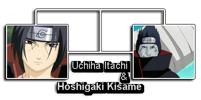 Uchiha Itachi & Hoshigaki Kisame – a primeira dupla da Akatsuki a aparecer, antes mesmo da série revelar quaisquer informações relevantes sobre a organização. Os dois parecem trabalhar em harmonia - nunca foi mostrado nenhum atrito ou desavença entre eles. No entanto, Itachi demonstra ter alguma autoridade sobre Kisame, que normalmente segue as instruções do colega imediatamente. O trabalho em equipe é notável, superando as diferenças entre as personalidades, ambições e estilo de luta de ambos.